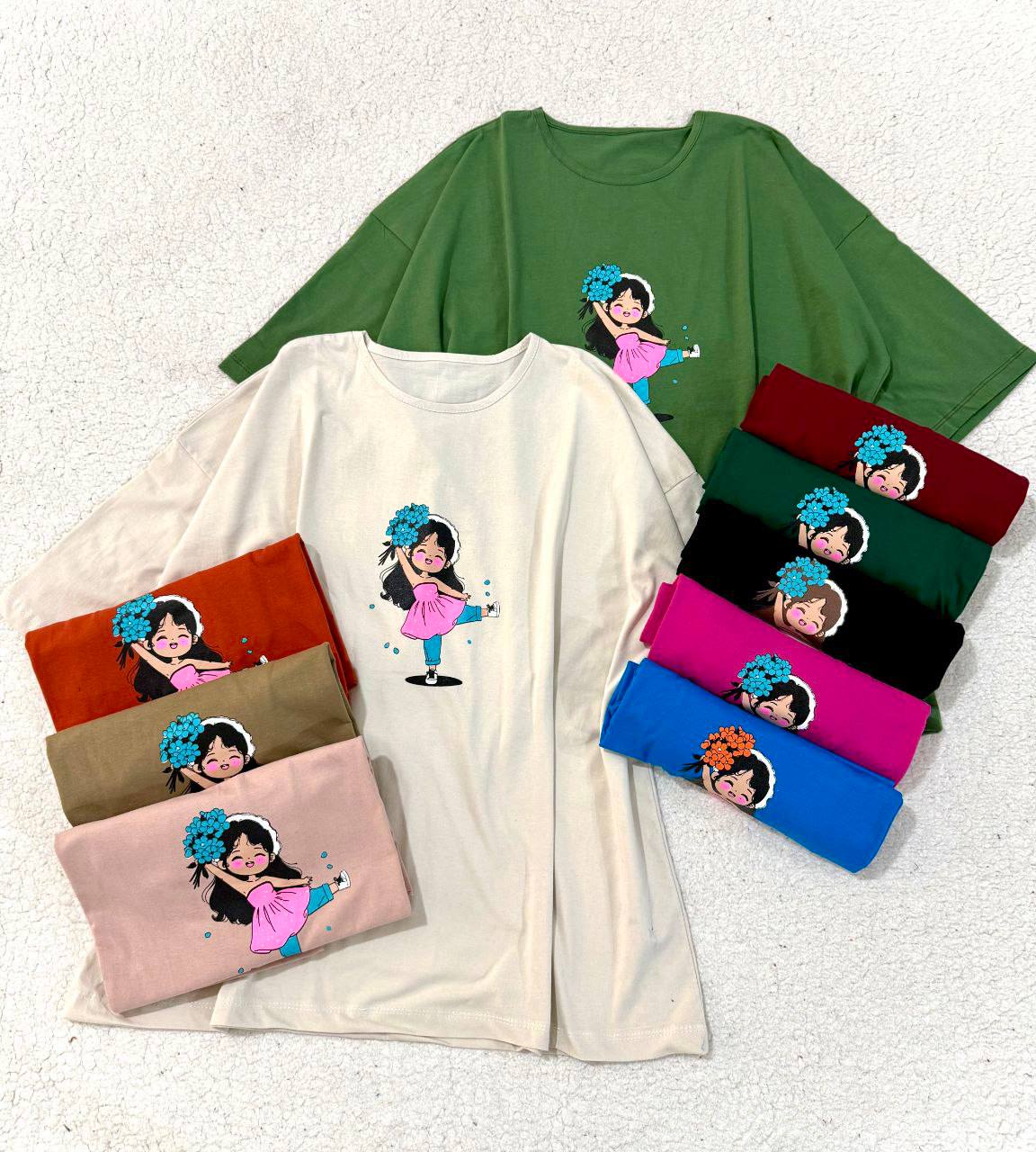 تیشرت لانگ بیگ سایز جنس نخپنبه طرح چاپ