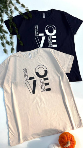 تیشرت باکسی دخترانه مدل چاپ love جنس نخپنبه سوپر اعلاء