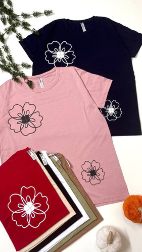 تیشرت زنانه آستین سه رب طرح بابونه جنس نخپنبه اعلاء گرم بالا
