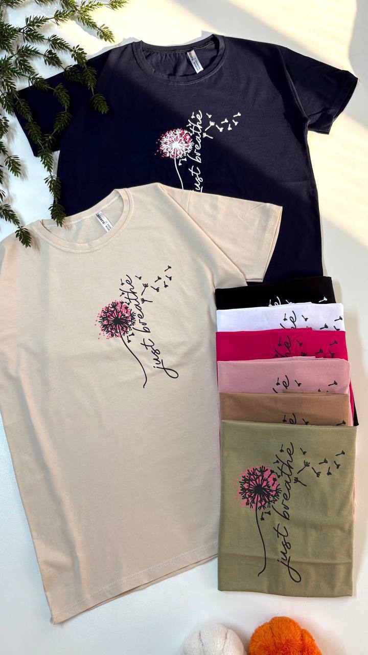 تیشرت زنانه آستین سه رب طرح بابونه جنس نخپنبه اعلاء گرم بالا