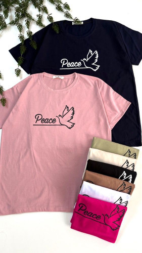 تیشرت باکسی دخترانه استین کوتاه جنس نخپنبه سوپر طرح کبوتر