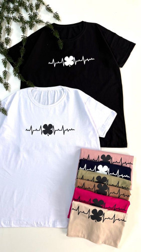 تیشرت باکسی دخترانه طرح ضربان قلب جنس نخپنبه سوپر