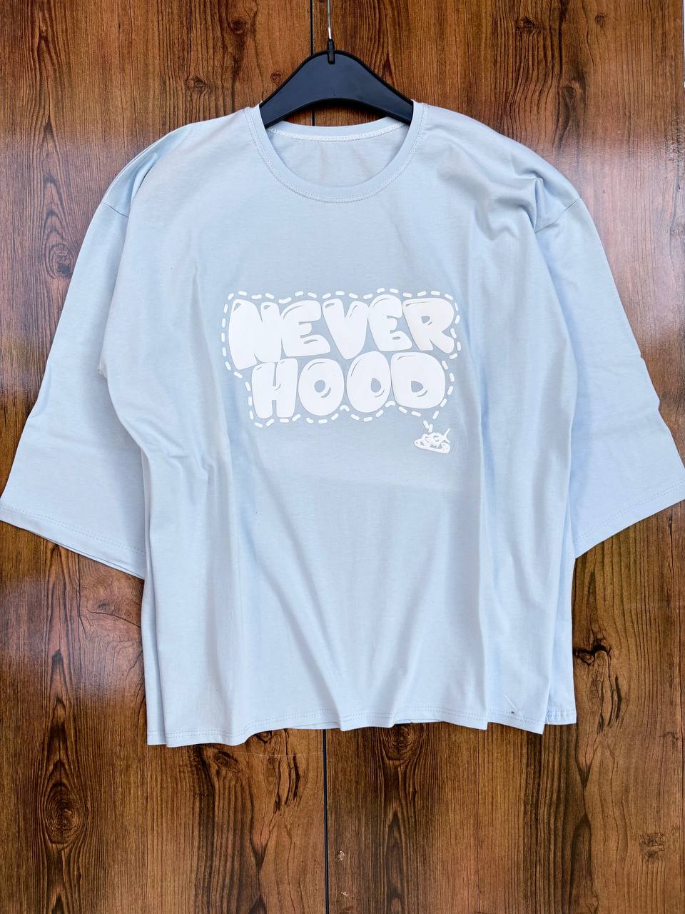 تیشرت دخترانه استین سه رب جنس نخپنبه طرح نوشته چاپ پفکی