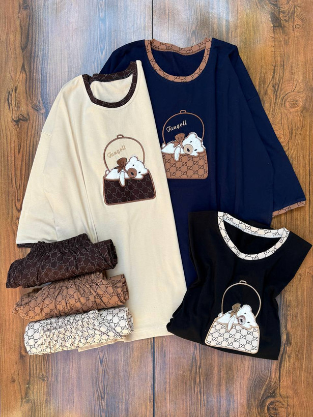 ست تیشرت شلوار دخترانه طرح گوچی جنس نخپنبه سوپر