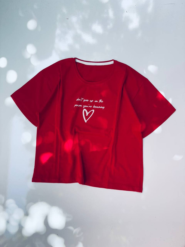 کراپ دخترانه طرح قلب نوشته جنس نخپنبه