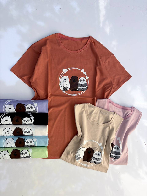 تیشرت دخترانه اسپرت آستین کوتاه طرح سه خرس جنس نخپنبه