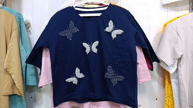 کراپ آستین سه رب مرواریدی طرح پروانه جنس نخپنبه
