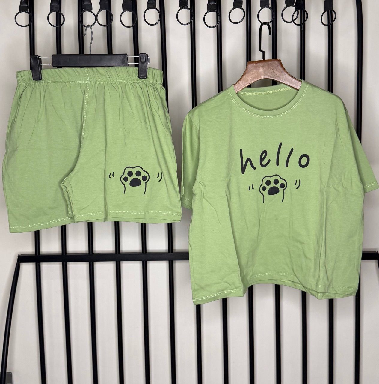 ست کراپ شورتک دخترانه جنس نخپنبه سوپر طرح hello